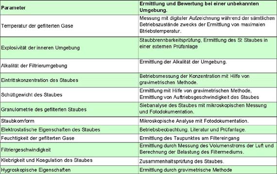 Für die Ermittlung der physikalischen und chemischen Eigenschaften ist es geeignet eine chemisch-physikalische Analyse der Umgebung durchzuführen, wo das Filtermedium zuverlässig wirken soll.